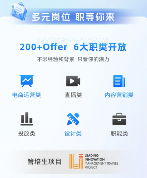 碧橙数字此次校招提供了超过200个岗位,涵盖电商运营、直播、内容营销、投放、设计、职能等六大职类,不限经验和背景,只看重你的潜力。无论是希望深耕电商领域的运营高手,还是对直播行业充满热情的新人主播,亦或是擅长创意设计的设计师,都能在碧橙数字找到适合自己的舞台。此外,公司为管培生量身定制了成长计划,通过全景轮岗、导师带教等方式,助力新员工快速成长,优秀人员一年可晋升三级。