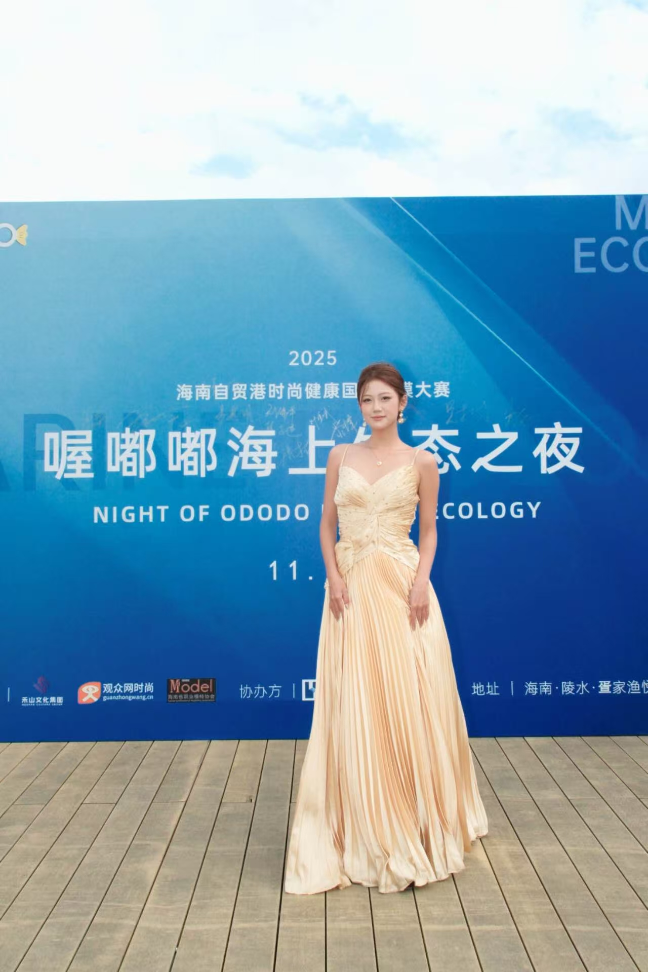 活动在独具特色的疍家渔悦餐厅举办,这座创新性海上漂浮餐厅为整场活动提供了独特的滨海背景。整场演出通过精心设计的走秀环节,完美呈现了时尚与环保的和谐共生。从展现环保理念的快闪活动到采用可持续材料制作的运动服饰,再到优雅动人的晚礼服展演,每个环节都彰显了"绿色发展、美丽海南"的环保理念。